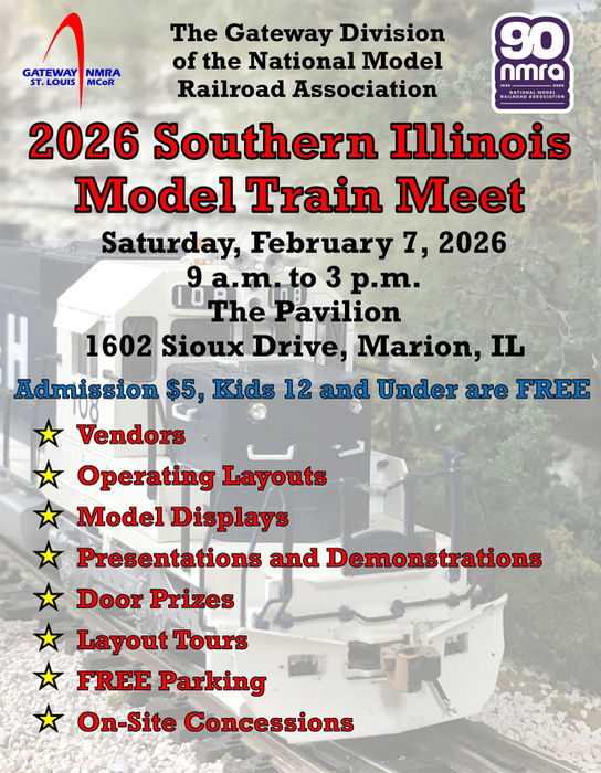 The Gateway Division is the greater St. Louis area chapter of the National Model Railroad Association (NMRA), the largest organization devoted to the development, promotion, and enjoyment of the hobby of model railroading.